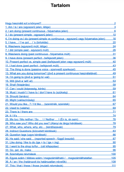 ✔ A legfontosabb angol nyelvtani témák rendszerezve